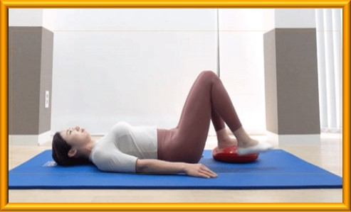 스위스 볼 브릿지(Swiss Ball Bridge): 스위스 볼 위에 등을 대고 이 동작을 수행하면 코어 근육이 더욱 강화될 수 있다.