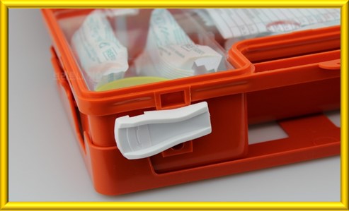 - 구급 상자: 사고나 부상 시 구급 처치를 제공하기 위해 준비된 복장이다. 기본 의료품, 약품, 붕대 등이 포함되어 있다.