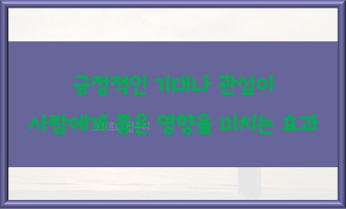 다른 사람들의 긍정적인 기대는 개인의 심리적 안정과 자신감을 향상하는 데 중요한 역할을 한다.