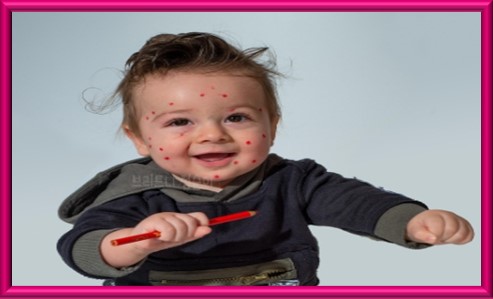 - 붉은 반점(홍반): 얼굴, 두피, 가슴, 위에 작은 붉은 반점이 나타나기 시작한다.