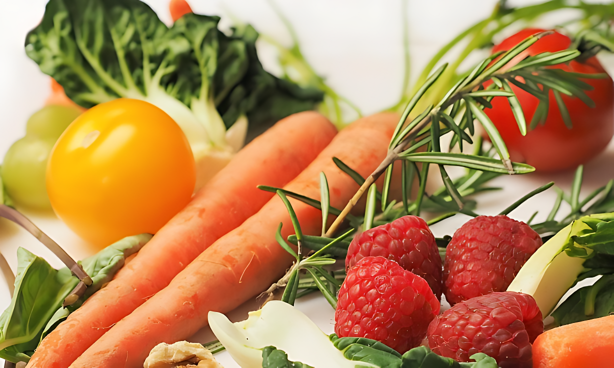 브로콜리, 시금치, 피망, 케일과 같은 항산화 성분이 풍부한 채소를 끼니마다 섭취하는 것이 중요하다. 이러한 채소에는 비타민 C, 베타카로틴, 폴리페놀이 풍부하여 세포 노화를 늦추는 데 도움이 된다. 이상적으로는 당분이 적고 항산화 성분이 높은 딸기류(블루베리, 산딸기, 딸기), 사과, 자몽을 소량 섭취하는 것이 좋다.