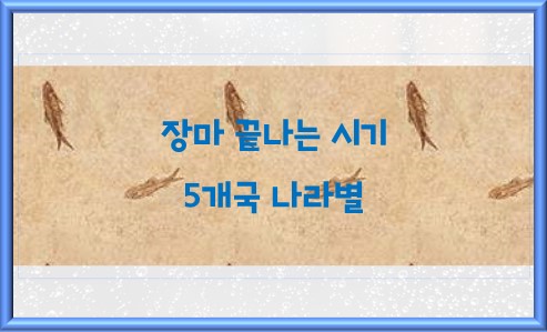 나라별로 장마 기간과 종료 시기는 다음과 같이 다양하다.